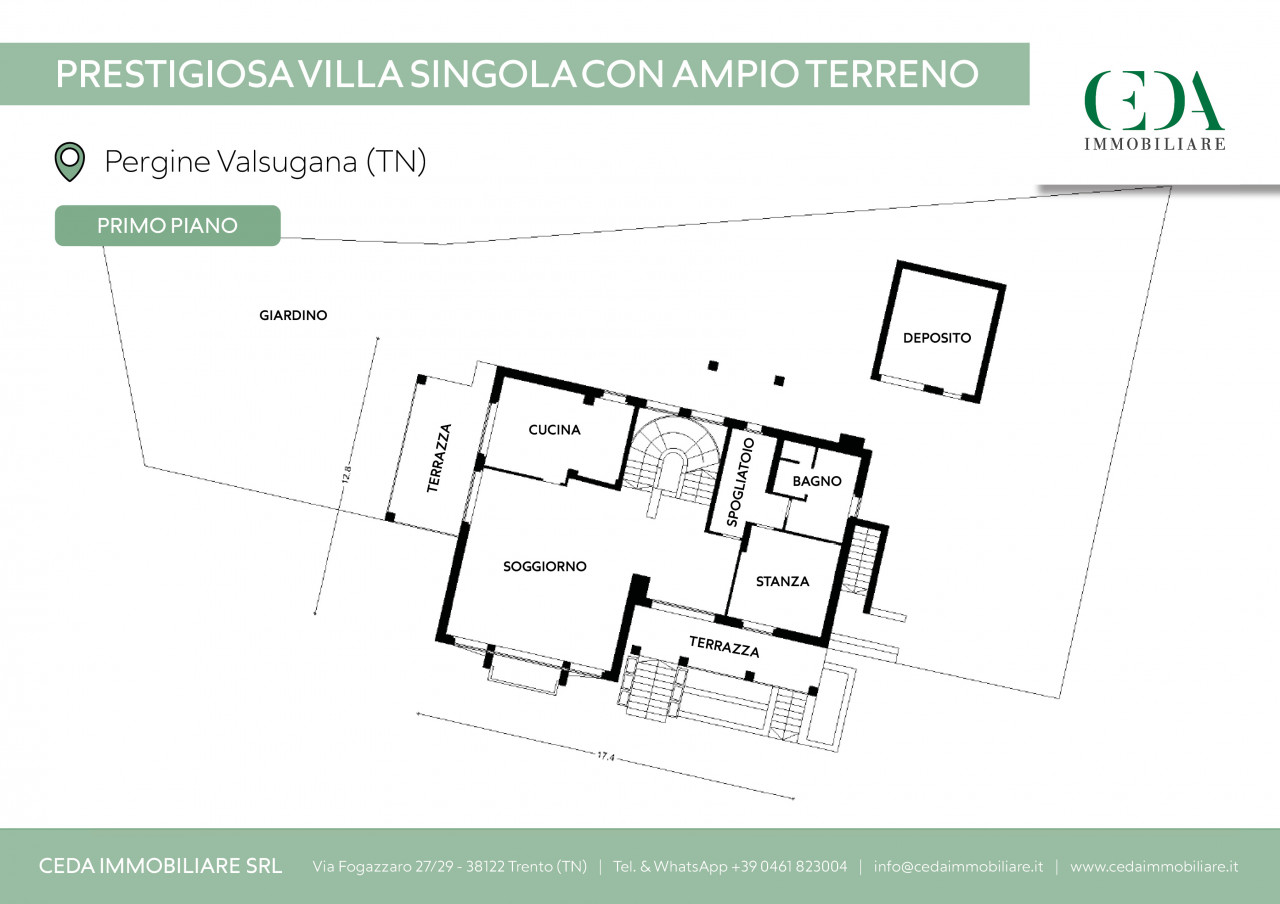 In posizione dominante, altamente soleggiata e con esposizione eccellente, proponiamo in vendita una proprietà di assoluto pregio sopra l’abitato di Pergine Valsugana, a soli 15 minuti da Trento e a pochi minuti dal Lago di Caldonazzo.