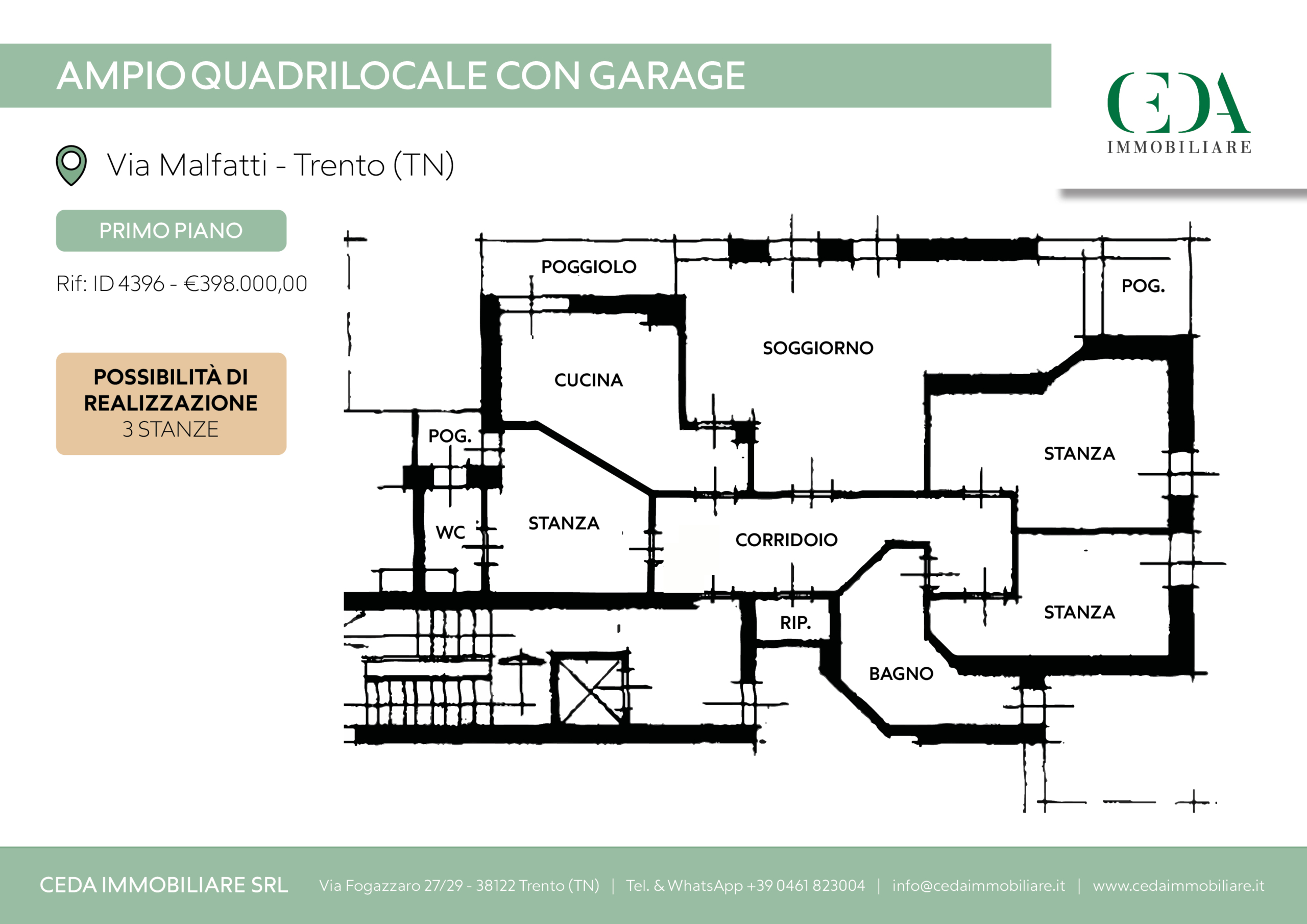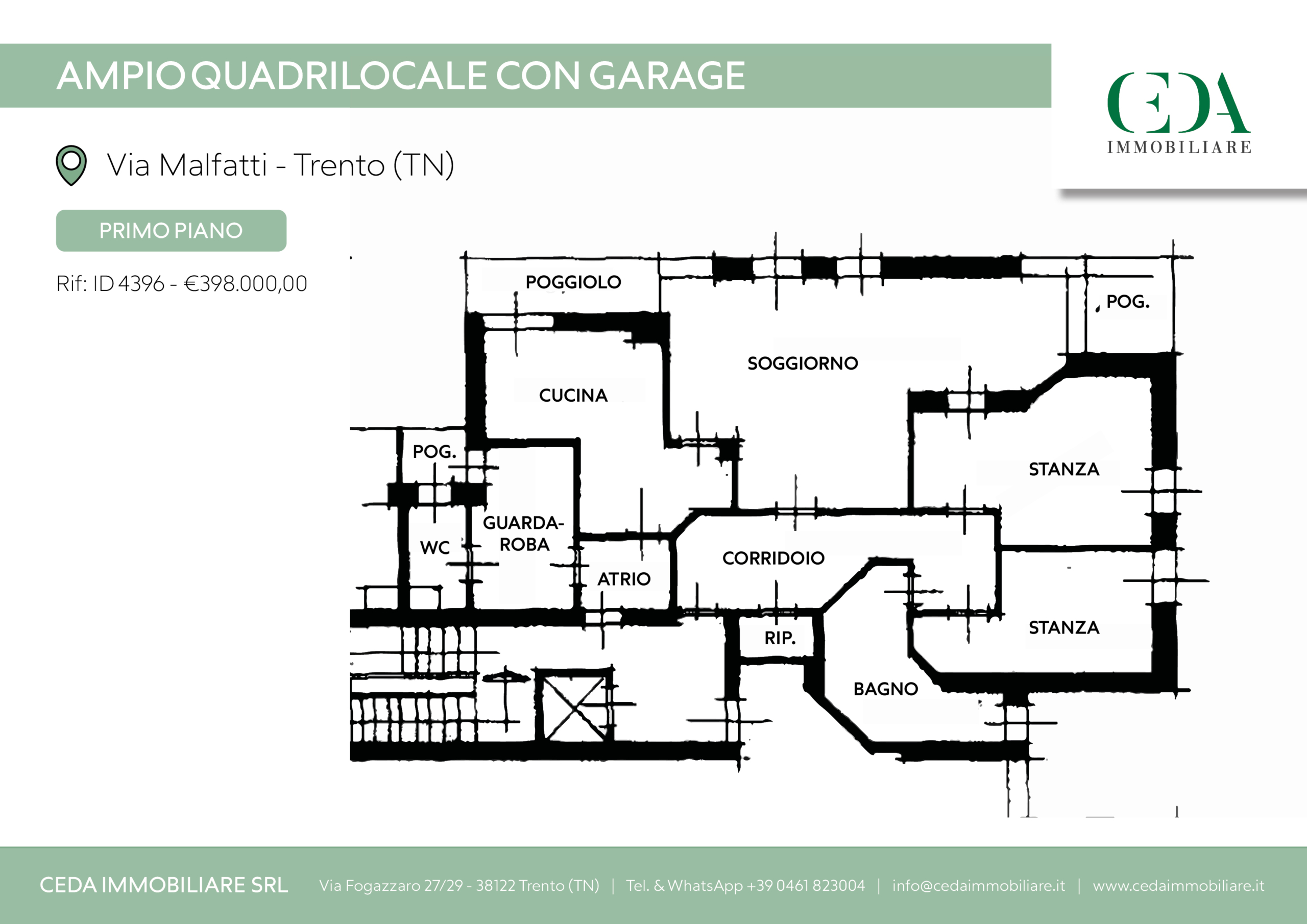 VIA MALFATTI – QUADRILOCALE CON GARAGE IN POSIZIONE CENTRALE